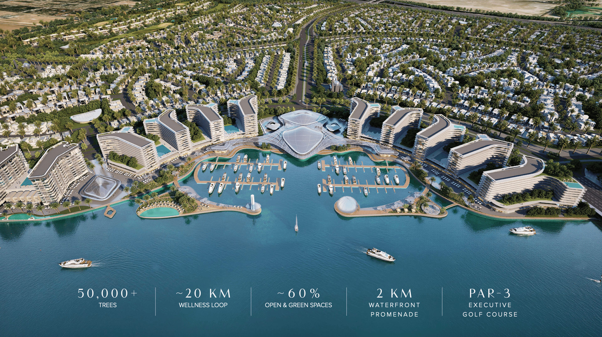 Seltenes „Low-Density“-Konzept: Mit 3,5 Millionen Quadratmetern, die großzügig für Parks, Wasserwege und einen Greg-Norman-Golfplatz reserviert sind, bietet Sobha City eine Lebensqualität, die in dieser Größenordnung in Abu Dhabi einzigartig ist.