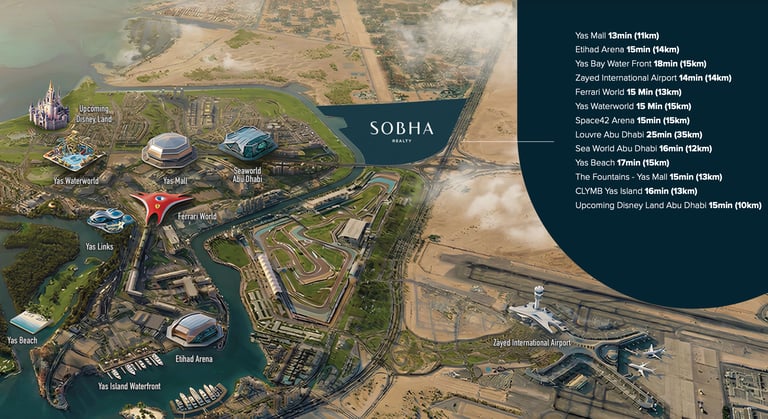 Eingebettet zwischen dem pulsierenden Herzschlag von Yas Island und der Ruhe der Küste von Abu Dhabi, definiert Sobha City die Landkarte der Hauptstadt neu. Die Lage in Al Bahiya bietet eine unschlagbare Anbindung: In nur 10 Minuten erreichen Sie den internationalen Flughafen Zayed, während die wichtigsten Wirtschaftszentren und Freizeitattraktionen von Abu Dhabi direkt vor Ihrer Haustür liegen.