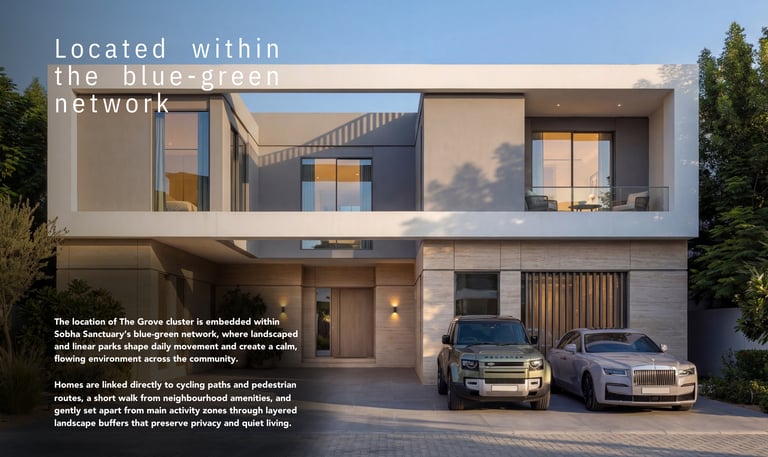 Sobha Sanctuary definiert naturnahes Wohnen neu durch eine Architektur, die Grenzen zwischen Innen- und Außenraum verschwinden lässt. Die Master-Community besteht aus drei exklusiven Villen-Clustern – The Grove, The Brooks und The Greens –, die alle dem gemeinsamen Leitbild von Ruhe und höchster Bauqualität folgen.