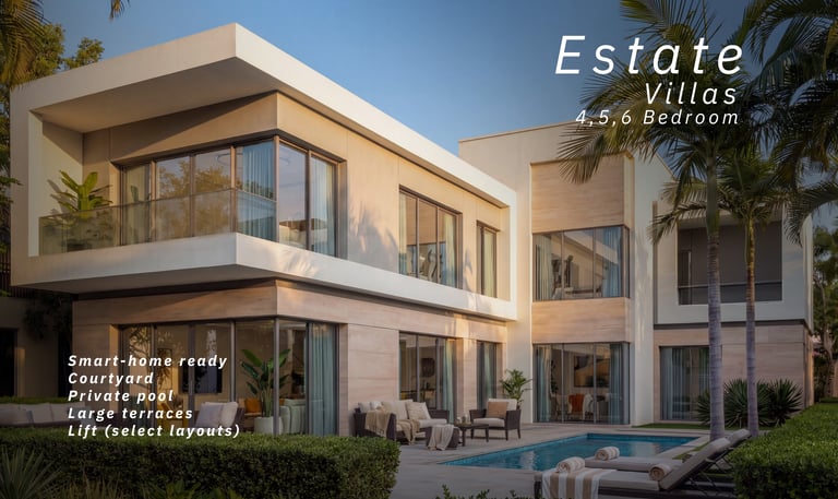 Exklusives Platzangebot: Die Villen bieten großzügige 4-, 5- und 6-Bedroom Layouts, die speziell darauf ausgelegt sind, den Bewohnern einen Rückzugsort voller Licht und natürlicher Belüftung zu bieten.